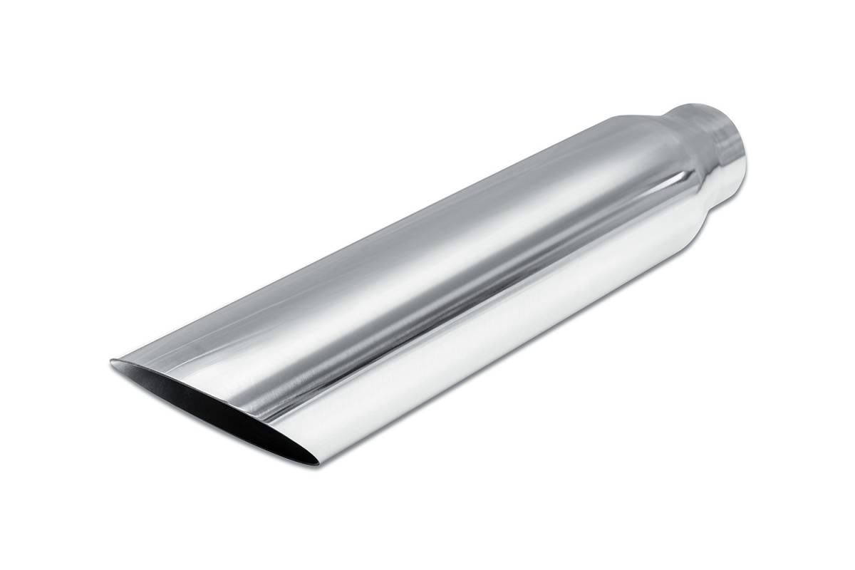 Street Style - SS5718AC Universal Polished Stainless Single Wall Exhaust Tip - 3.5" 45° Angle Cut Outlet / 2.5" Inlet / 18.0" Length
