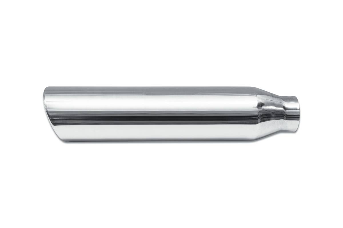 Street Style - SS5718RAC Universal Polished Stainless Single Wall Exhaust Tip - 3.5" 15° Angle Cut Rolled Edge Outlet / 2.5" Inlet / 18.0" Length